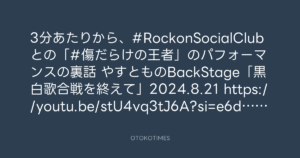 やすとものBackStage「黒白歌合戦を終えて」2024.8.21 https://youtu.be/stU4vq3tJ6A?si=e6djoqvoqC7ceJr8 @YouTubeより