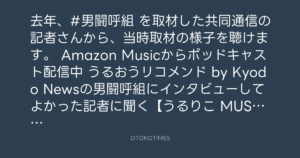 去年、#男闘呼組 を取材した共同通信の記者さんから、当時取材の様子を聴けます。