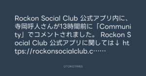Rockon Social Club 公式アプリ内に、寺岡呼人さんが13時間前に「Community」でコメントされました。