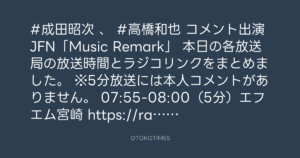 📻 #成田昭次#高橋和也 コメント出演 JFN「Music Remark」