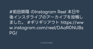 OTOKOTIMES @OtokoTimes1988 – 22:20・2024年9月27日 2024 9/27 2024-09-27 #前田耕陽 のInstagram Reel 本日午後インスタライブのアーカイブを投稿しました。 #ギリギリアウト https://www.instagram.com/reel/DAaR0NUBsPG/ Source:https://x.com/OtokoTimes1988/status/18396563495... text X Post この記事が気に入ったら フォローしてね! Follow @OtokoTimes1988 よかったらシェアしてね! URLをコピーしました! OTOKOTIMES @OtokoTimes1988 - 22:15・2024年9月27日 2024.09.28 - K子。 @ K子。's ROOM(AddicTripS)