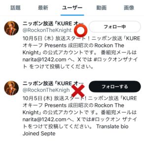 ラジオ「成田昭次の Rockon The Knight」の偽アカウントが確認されています。公式アカウントは @RockonTheKnight です。偽アカウントは最後の “t” が抜けているため、見分ける際はお気をつけください。