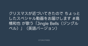 🎬 OTOKOTIMES @OtokoTimes1988 – 23:40・2024年11月30日 2024 11/30 2024-11-30 🎄 クリスマスが近づいてきたので ちょっとしたスペシャル動画をお届けします🎁 #高橋和也 が歌う「Jingle Bells(ジングルベル)」(英語バージョン)🎶 Source:https://x.com/OtokoTimes1988/status/18628693779... text VIDEO X Post この記事が気に入ったら フォローしてね! Follow @OtokoTimes1988 よかったらシェアしてね! URLをコピーしました! Addict of The Tripminds @Atripminds2021 - 22:54・2024年11月30日 OTOKOTIMES @OtokoTimes1988 - 11:07・2024年12月1日
