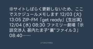 ※サイトしばらく更新しないため、ここでスケジュールメモします