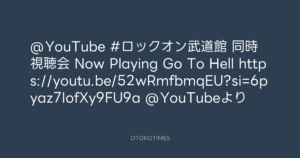 OTOKOTIMES @OtokoTimes1988 – 21:20・2024年12月6日 2024 12/06 2024-12-06 @YouTube #ロックオン武道館 同時視聴会 Now Playing Go To Hell https://youtu.be/52wRmfbmqEU?si=6pyaz7IofXy9FU9a @YouTubeより Source:https://x.com/OtokoTimes1988/status/18650083907... text X Post この記事が気に入ったら フォローしてね! Follow @OtokoTimes1988 よかったらシェアしてね! URLをコピーしました! Rockon Social Club @rockonsocialclu - 21:16・2024年12月6日 OTOKOTIMES @OtokoTimes1988 - 21:25・2024年12月6日