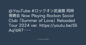 Rockon Social Club「Summer of Love」Reloaded Tour 2024 ver. https://youtu.be/S5Aq16R7Uh8?si=KD3x0KQaJpo7AZM_ @YouTubeより