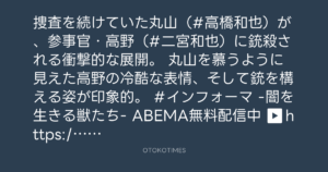 捜査を続けていた丸山(#高橋和也)が、参事官・高野(#二宮和也)に銃殺される衝撃的な展開。