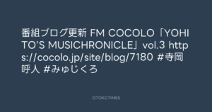 OTOKOTIMES @OtokoTimes1988 – 1:33・2024年12月16日 2024 12/16 2024-12-16 番組ブログ更新 FM COCOLO「YOHITO’S MUSICHRONICLE」vol.3 https://cocolo.jp/site/blog/7180 #寺岡呼人 #みゅじくろ Source:https://x.com/OtokoTimes1988/status/18683335877... text X Post この記事が気に入ったら フォローしてね! Follow @OtokoTimes1988 よかったらシェアしてね! URLをコピーしました! 岡本健一 @kenichi.okamoto - 00:27・2024年12月16日(IG post) 東京レコード @tokyo_records - 10:32・2024年12月16日