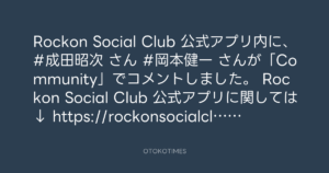 Rockon Social Club 公式アプリ内に、#成田昭次 さん #岡本健一 さんが「Community」でコメントしました。