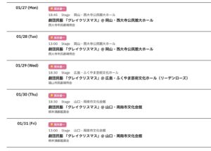 OTOKOTIMES @OtokoTimes1988 – 0:11・2025年1月6日 2025 1/06 2025-01-06 📅 1/27〜1/31までのスケジュールをお届けします。 (現時点で確認可能な範囲のみ) Source:https://x.com/OtokoTimes1988/status/18759230572... image X Post この記事が気に入ったら フォローしてね! Follow @OtokoTimes1988 よかったらシェアしてね! URLをコピーしました! OTOKOTIMES @OtokoTimes1988 - 0:10・2025年1月6日 OTOKOTIMES @OtokoTimes1988 - 0:21・2025年1月6日
