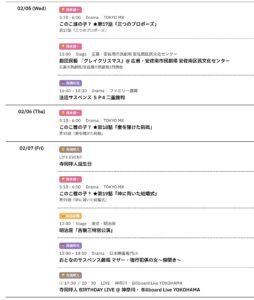 OTOKOTIMES @OtokoTimes1988 – 17:32・2025年1月13日 2025 1/13 2025-01-13 📅 2/5〜2/9までのスケジュールをお届けします。 ※現時点で確認可能な範囲のみ。 (2025/1/13 更新) Source:https://x.com/OtokoTimes1988/status/18787218120... image X Post この記事が気に入ったら フォローしてね! Follow @OtokoTimes1988 よかったらシェアしてね! URLをコピーしました! OTOKOTIMES @OtokoTimes1988 - 17:31・2025年1月13日 OTOKOTIMES @OtokoTimes1988 - 17:33・2025年1月13日