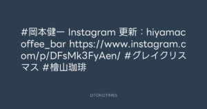 OTOKOTIMES @OtokoTimes1988 – 9:10・2025年2月8日 2025 2/08 2025-02-08 #岡本健一 Instagram 更新:hiyamacoffee_bar https://www.instagram.com/p/DFsMk3FyAen/ #グレイクリスマス #檜山珈琲 Source:https://x.com/OtokoTimes1988/status/18880175979... text X Post この記事が気に入ったら フォローしてね! Follow @OtokoTimes1988 よかったらシェアしてね! URLをコピーしました! OTOKOTIMES @OtokoTimes1988 - 0:01・2025年2月8日 OTOKOTIMES @OtokoTimes1988 - 9:21・2025年2月8日