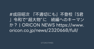 OTOKOTIMES @OtokoTimes1988 – 7:38・2025年3月17日 2025 3/17 2025-03-17 #成田昭次 『不適切にも』不登校「S君」令和で“超大物”に 続編へのキーマンか? | ORICON NEWS https://www.oricon.co.jp/news/2320668/full/ Source:https://x.com/OtokoTimes1988/status/19014027957... text X Post この記事が気に入ったら フォローしてね! Follow @OtokoTimes1988 よかったらシェアしてね! URLをコピーしました! OTOKOTIMES @OtokoTimes1988 - 7:38・2025年3月17日 Koyo Maeda @koyomaeda - 17:09・2025年3月17日