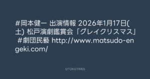 OTOKOTIMES @OtokoTimes1988 – 23:03・2025年7月22日 2025 7/22 2025-07-22 #岡本健一 出演情報 📅2026年1月17日(土) 🎟️松戸演劇鑑賞会「グレイクリスマス」 #劇団民藝 http://www.matsudo-engeki.com/ Source:https://x.com/OtokoTimes1988/status/19476587041... text X Post この記事が気に入ったら フォローしてね! Follow @OtokoTimes1988 よかったらシェアしてね! URLをコピーしました! OTOKOTIMES @OtokoTimes1988 - 23:01・2025年7月22日 東京レコード @tokyo_records - 11:01・2025年7月23日
