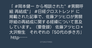 #日経クロストレンド に掲載された記事で、佐藤アツヒロが男闘呼組の再結成に関する経緯について言及しています。(要登録)