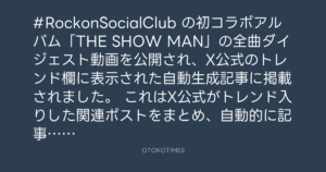 #RockonSocialClub の初コラボアルバム「THE SHOW MAN」の全曲ダイジェスト動画を公開され、X公式のトレンド欄に表示された自動生成記事に掲載されました。