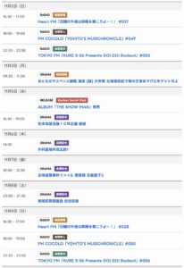 11/2〜11/9までのスケジュールをお届けします。