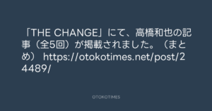 OTOKOTIMES @OtokoTimes1988 – 11:37・2025年11月8日 2025 11/08 2025-11-08 「THE CHANGE」にて、高橋和也の記事(全5回)が掲載されました。(まとめ) https://otokotimes.net/post/24489/ Source:https://x.com/OtokoTimes1988/status/19869863824... text X Post この記事が気に入ったら フォローしてね! Follow @OtokoTimes1988 よかったらシェアしてね! URLをコピーしました! AddicTripS @addictrips2023 - 10:50・2025年11月8日(IG post) Rockon Social Club @rockonsocialclu - 12:05・2025年11月8日
