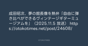成田昭次、夢の館長像を熱弁「自由に弾き比べができるヴィンテージギターミュージアムを」(2025.11.5 放送) https://otokotimes.net/post/24608/