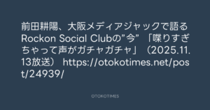 前田耕陽、大阪メディアジャックで語るRockon Social Clubの”今” 「喋りすぎちゃって声がガチャガチャ」(2025.11.13放送) https://otokotimes.net/post/24939/