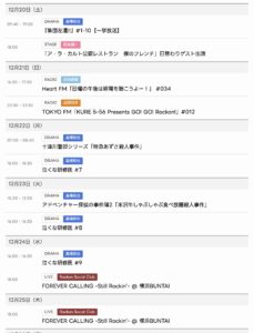 12/20〜12/25までのスケジュールをお届けします。