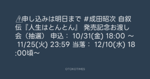 #成田昭次 自叙伝『人生はとんとん』 発売記念お渡し会(抽選)