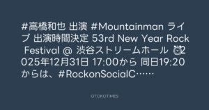 同日19:20からは、#RockonSocialClub として #堺正章 と共に第76回 NHK #紅白歌合戦 に出演。