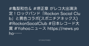 #亀梨和也& #堺正章 がレコ大出演決定!ロックバンド「Rockon Social Club」と異色コラボ(スポニチアネックス)