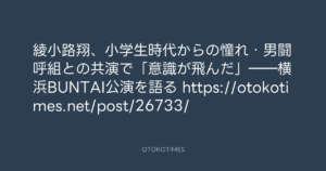 OTOKOTIMES @OtokoTimes1988 – 13:11・2025年12月29日 2025 12/29 2025-12-29 綾小路翔、小学生時代からの憧れ・男闘呼組との共演で「意識が飛んだ」――横浜BUNTAI公演を語る https://otokotimes.net/post/26733/ Source:https://x.com/OtokoTimes1988/status/20054919290... text X Post この記事が気に入ったら フォローしてね! Follow @OtokoTimes1988 よかったらシェアしてね! URLをコピーしました! OTOKOTIMES @OtokoTimes1988 - 8:54・2025年12月29日 Rolling Stone Japan @rollingstonejp - 19:03・2025年12月29日