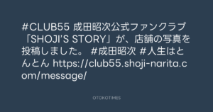 OTOKOTIMES @OtokoTimes1988 – 19:10・2026年1月19日 2026 1/19 2026-01-19 #CLUB55 成田昭次公式ファンクラブ「SHOJI’S STORY」が、店舗の写真を投稿しました。 #成田昭次 #人生はとんとん https://club55.shoji-narita.com/message/ Source:https://x.com/OtokoTimes1988/status/20131923353... text X Post この記事が気に入ったら フォローしてね! Follow @OtokoTimes1988 よかったらシェアしてね! URLをコピーしました! HMV&BOOKS SHIBUYA @HmvBooksShibuya - 18:46・2026年1月19日 Koyo Maeda @koyomaeda - 19:10・2026年1月19日