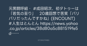 元男闘呼組・ #成田昭次、初タトゥーは「若気の至り」 20歳回想で苦笑「バリバリだったんですかね」(ENCOUNT)