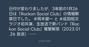 #岡本健一 と #成田昭次 ラジオ初共演、生放送で新バンド『Rockon Social Club』電撃解禁(2023.01.26 放送)