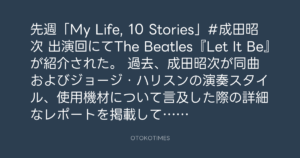 先週「My Life, 10 Stories」#成田昭次 出演回にてThe Beatles『Let It Be』が紹介された。
