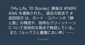 過去の放送で #成田昭次 は、カート・コバーンの「静と動」の構成や、独特なクリーントーンについて技術的な視点で解説している。
