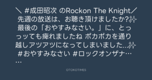 ニッポン放送「KURE オキーフ Presents 成田昭次のRockon The Knight」 @RockonTheKnight – 19:00・2024年2月13日