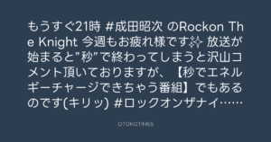 放送が始まると”秒”で終わってしまうと沢山コメント頂いておりますが、【秒でエネルギーチャージできちゃう番組】でもあるのです📢(キリッ)