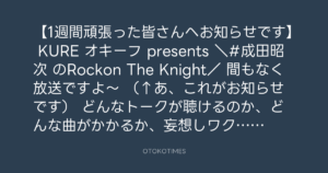 ニッポン放送「KURE オキーフ Presents 成田昭次のRockon The Knight」 @RockonTheKnight – 16:50・2024年4月13日