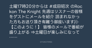 ニッポン放送「KURE オキーフ Presents 成田昭次のRockon The Knight」 @RockonTheKnight – 16:55・2024年5月17日