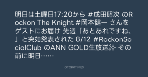 8/12 #RockonSocialClub のANN GOLD生放送✨