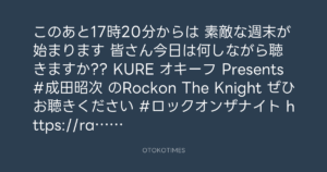 ニッポン放送「KURE オキーフ Presents 成田昭次のRockon The Knight」 @RockonTheKnight – 17:06・2024年12月21日