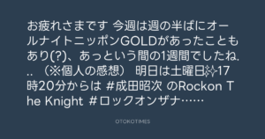 今週は週の半ばにオールナイトニッポンGOLDがあったこともあり(?)、あっという間の1週間でしたね…