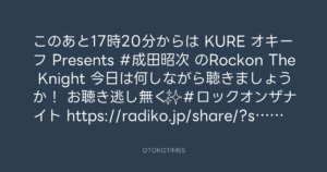 ニッポン放送「KURE オキーフ Presents 成田昭次のRockon The Knight」 @RockonTheKnight – 17:06・2025年2月15日