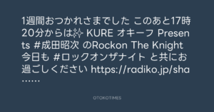 ニッポン放送「KURE オキーフ Presents 成田昭次のRockon The Knight」 @RockonTheKnight – 17:00・2025年4月19日