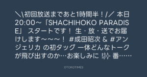 本日20:00〜「SHACHIHOKO PARADISE」