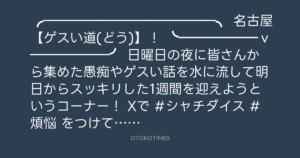 日曜日の夜に皆さんから集めた愚痴やゲスい話を水に流して明日からスッキリした1週間を迎えようというコーナー!