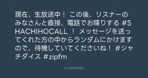 この後、リスナーのみなさんと直接、電話でお喋りする #SHACHIHOCALL !📞