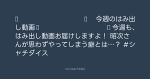 🎬 SHACHIHOKO PARADISE @ZIP_SHACHI_DISE – 20:00・2025年4月20日 2025 4/20 成田昭次 2025-04-20 ◤ ◥ 今週のはみ出し動画🎥 ◣ ◢ 今週も、はみ出し動画お届けしますよ!🎶 昭次さんが思わずやってしまう癖とは…?🛀 #シャチダイス Source:https://x.com/ZIP_SHACHI_DISE/status/1913910607... text VIDEO X Post 成田昭次 成田昭次 この記事が気に入ったら フォローしてね! Follow @OtokoTimes1988 よかったらシェアしてね! URLをコピーしました! 青山英樹 @aoyama_hideki - 13:04・2025年4月20日 SHACHIHOKO PARADISE @ZIP_SHACHI_DISE - 20:00・2025年4月20日 関連記事 ラジオ ZIP-FM「SHACHIHOKO PARADISE」 2024.10.13 Artist 成田昭次 1968.08.01