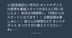 昨日の #シャチダイス の感想を番組スタッフがお2人に伺いましたよ!🗣️💭