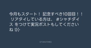 SHACHIHOKO PARADISE @ZIP_SHACHI_DISE – 20:02・2025年7月13日 2025 7/13 成田昭次 2025-07-13 今月もスタート!🥰 記念すべき10回目!! リアタイしている方は、 #シャチダイス をつけて実況ポストもしてくださいね!✨ Source:https://x.com/ZIP_SHACHI_DISE/status/1944351736... text X Post 成田昭次 成田昭次 この記事が気に入ったら フォローしてね! Follow @OtokoTimes1988 よかったらシェアしてね! URLをコピーしました! 東京レコード @tokyo_records - 20:00・2025年7月13日 SHACHIHOKO PARADISE @ZIP_SHACHI_DISE - 20:07・2025年7月13日 関連記事 ラジオ ZIP-FM「SHACHIHOKO PARADISE」 2024.10.13 Artist 成田昭次 1968.08.01