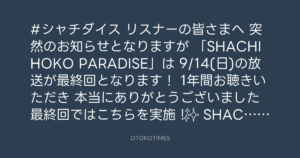SHACHIHOKO PARADISE @ZIP_SHACHI_DISE – 17:00・2025年9月1日